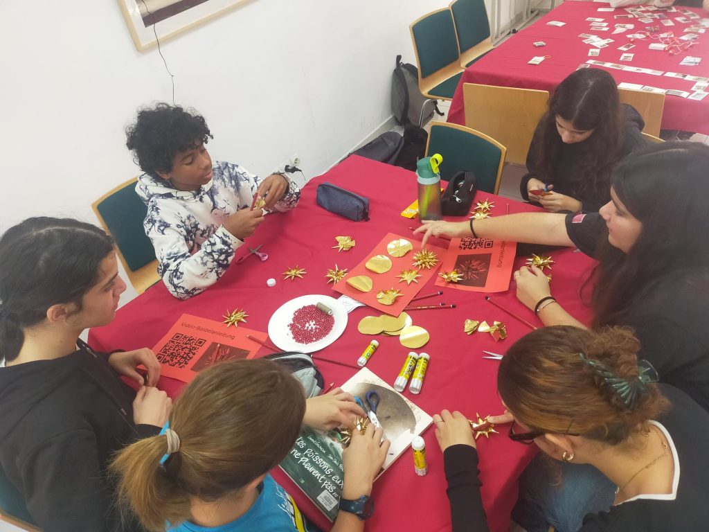 Les élèves ont pu participer à de nombreuses activités : bricoler une étoile de Noël, créer une carte de Noël, fabriquer des bracelets, réaliser des puzzles ou jouer à des jeux de mémoire (Memory-Spiel). Cette expérience a permis aux élèves de pratiquer l’allemand dans un contexte concret et festif, tout en découvrant la culture allemande de manière interactive.