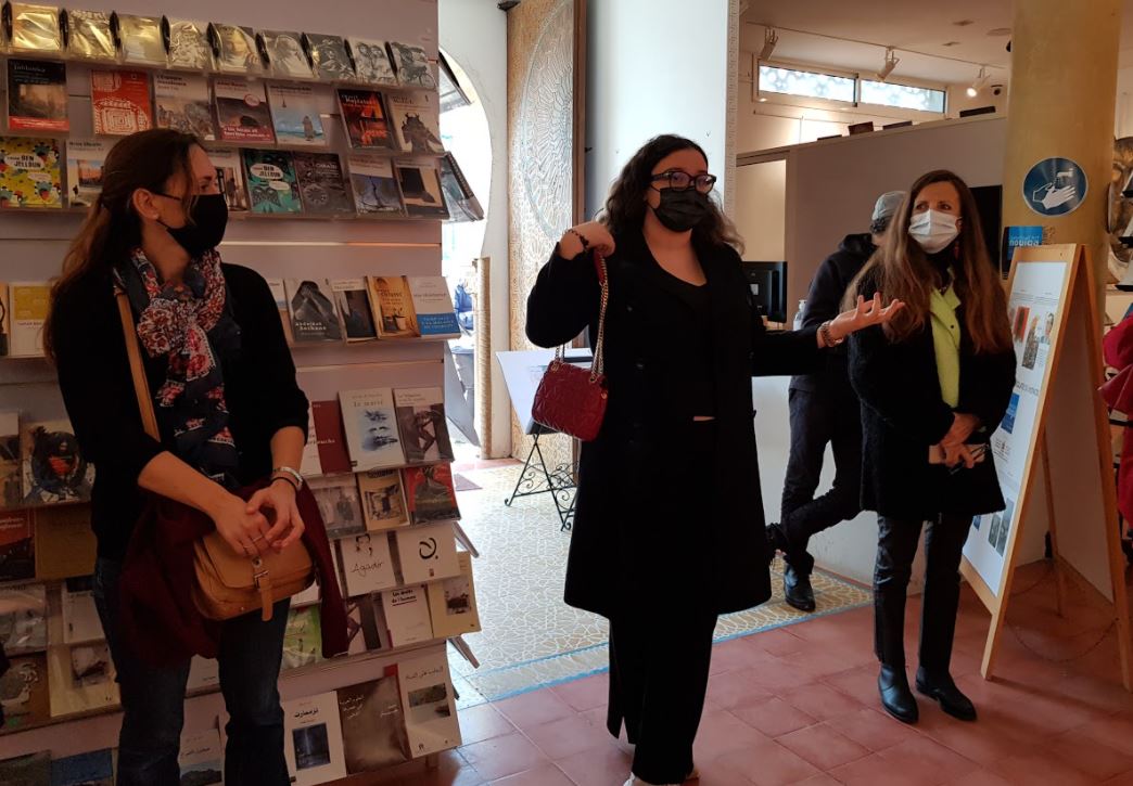 Samedi 23 janvier, à l’occasion du vernissage de ” Figures de l’ineffable ” de l’artiste Azzeddin Doukkarri, notre élève Hind BELMAHI de terminale spécialité arts plastiques a présenté le métier de ” commissaire d’exposition ” et expliqué l’accrochage des peintures à un public très impressionné par la clarté de ses propos et l’investissement dont les 4 élèves ont fait preuve. En présence de l’artiste qui a beaucoup apprécié la mise en valeur de son travail, Hind a démontré l’importance du rôle que jouait le curateur dans l’appréciation et l’impact des œuvres sur les spectateurs. Un grand oral avant l’heure, devant un jury d’experts. Que rêver de mieux pour la préparation de l’examen final ! On ne peut que la féliciter et lui souhaiter bonne chance !