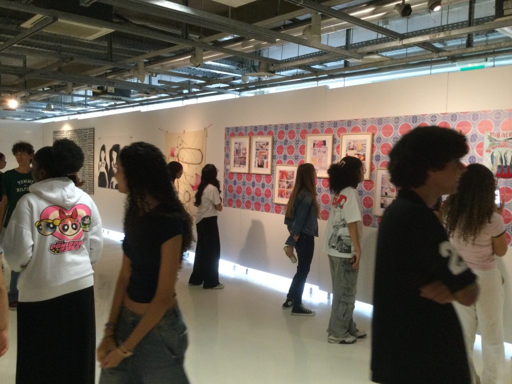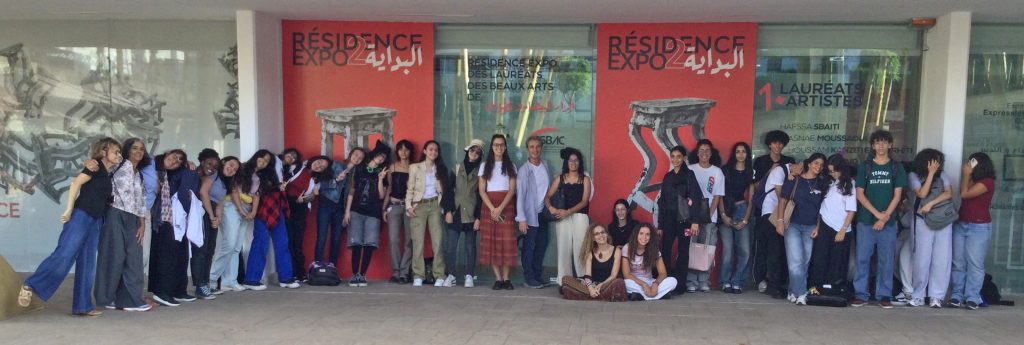 L’atelier s’est terminé par la réalisation d’une œuvre collective, exposée aux côtés de celles des artistes de BIDAYA. Elle restera visible pendant toute la durée de l’exposition, offrant aux élèves la fierté de voir leur travail reconnu dans un véritable lieu d’art.