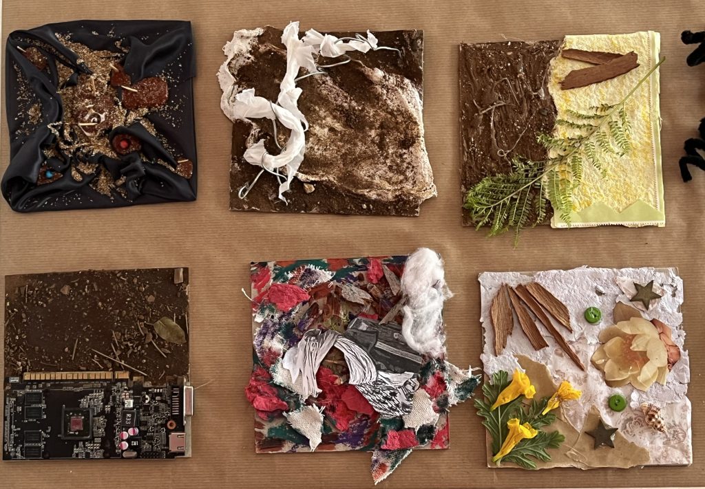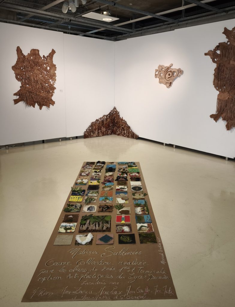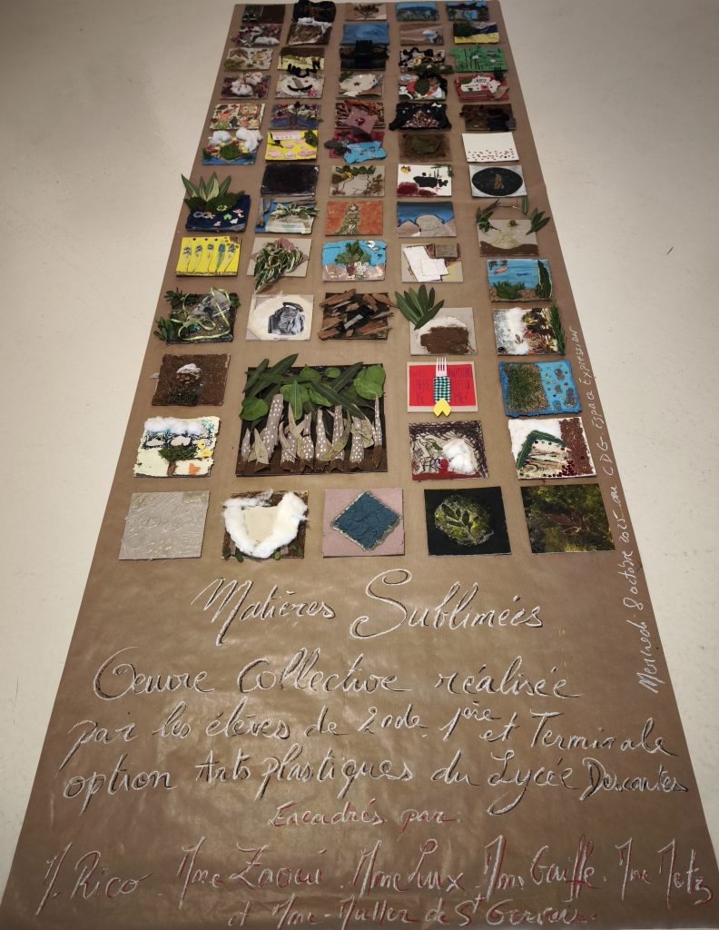 Dans le cadre de cette exposition, un atelier de création a été spécialement organisé pour les élèves. Encadrés par leurs professeurs, ils ont travaillé sur le thème : « Sublimez la matière ! » À partir de matériaux recyclés – papier, bois, plastique, tissu, végétaux, etc. – les élèves ont expérimenté différentes techniques artistiques. Ils ont transformé des objets du quotidien souvent jugés “usés” ou “inutiles” en œuvres d’art. Inspirés par les artistes de l’exposition, ils ont développé leur propre démarche créative tout en réfléchissant à la place de l’art dans le monde d’aujourd’hui et aux enjeux du développement durable.