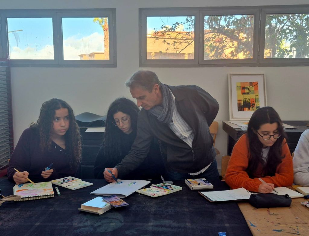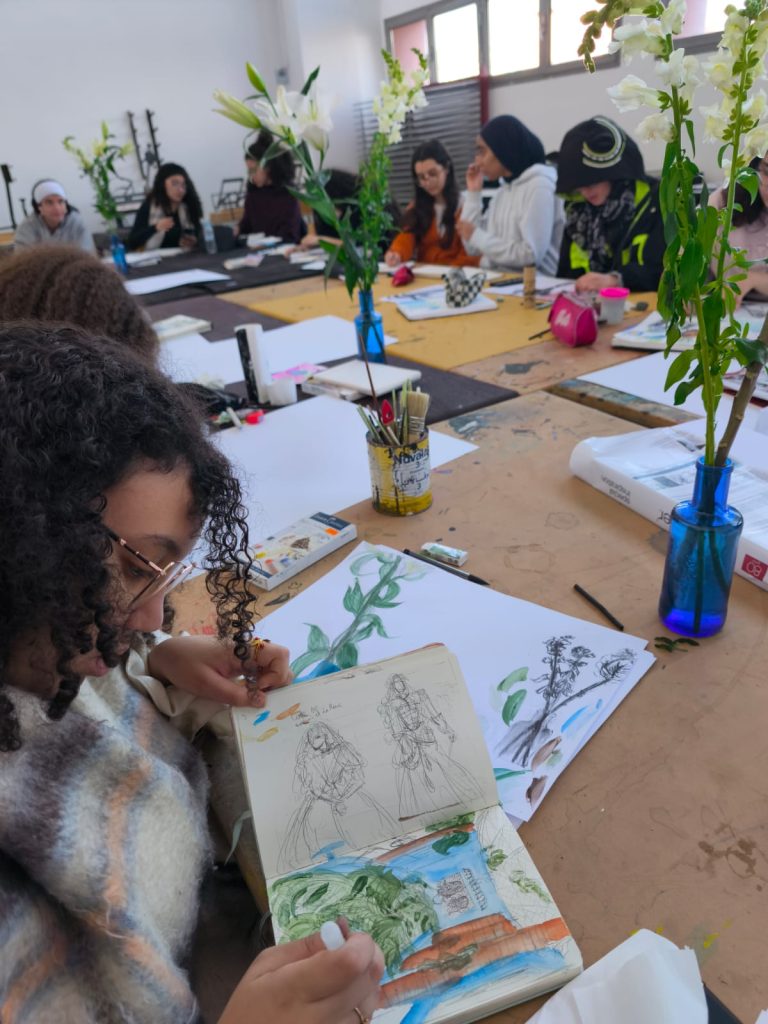 Vendredi 6 février 2026, les élèves ont été accueillis à l’École Supérieure des Arts Visuels (ESAV) pour une visite et un workshop en art graphique, favorisant les échanges avec l’enseignement supérieur artistique. L’après-midi s’est poursuivie avec la visite du musée des Confluences Dar el Bacha puis de la galerie DADA, offrant un regard croisé entre patrimoine, design et création actuelle.