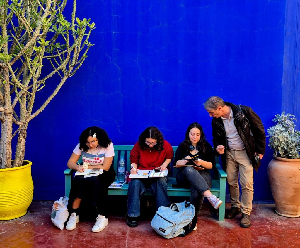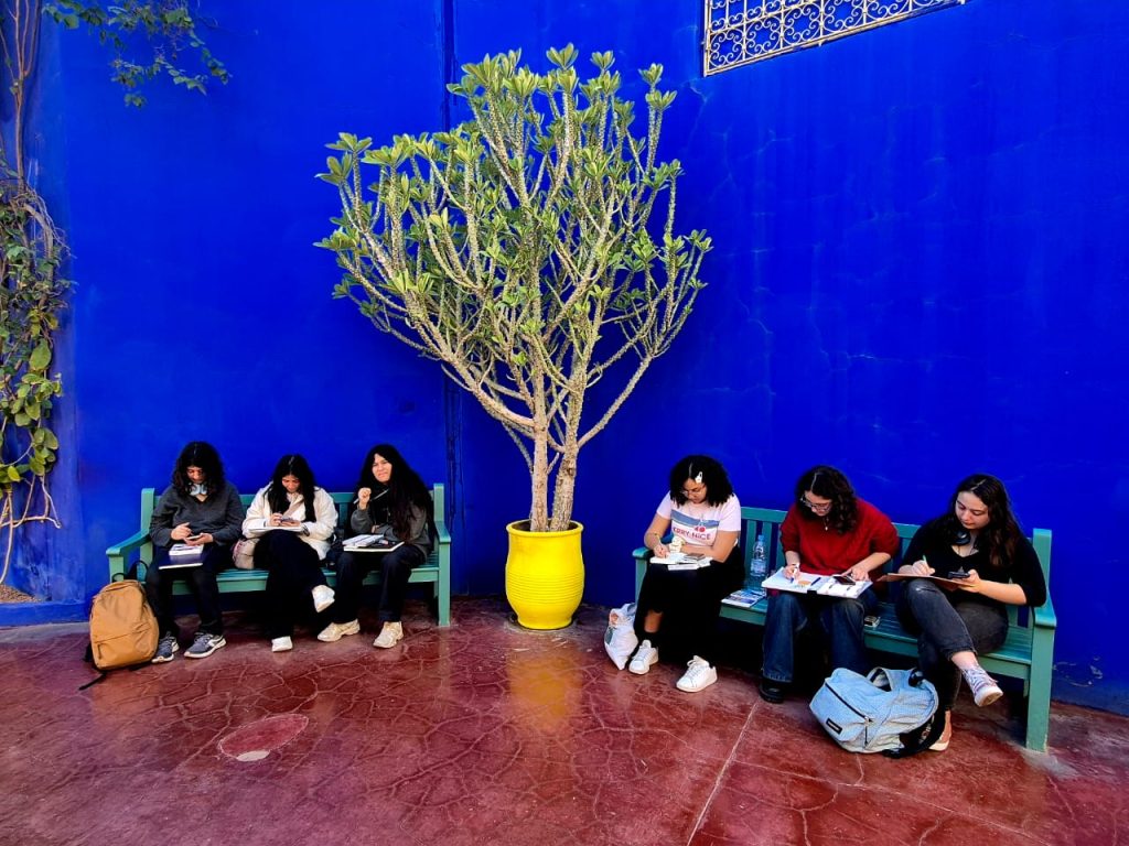 Jeudi 5 février 2026, le séjour a débuté par le trajet Rabat–Marrakech et l’installation à l’hôtel Tempoo Marrakech. L’après-midi a été consacré à la découverte de l’exposition de l’artiste Badr Bourbian à la Khalid Fine Arts Gallery, du musée Yves Saint Laurent et du jardin Majorelle, lieux emblématiques mêlant art, design et patrimoine. En soirée, les élèves ont visité la galerie Comptoir de Mines puis la Loft Art Gallery, leur permettant d’approcher le travail d’artistes contemporains et le fonctionnement des galeries.