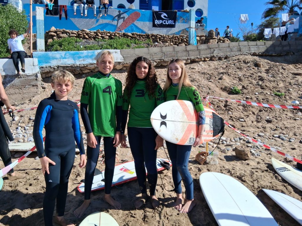Direction Agadir pour les élèves du lycée Descartes, engagés dans les finales UNSS Maroc de surf du 18 au 21 janvier sur la magnifique plage d’Imourane. Deux équipes collège, deux équipes lycée et trois jeunes officiels juges ont représenté l’établissement dans une ambiance sportive et conviviale.