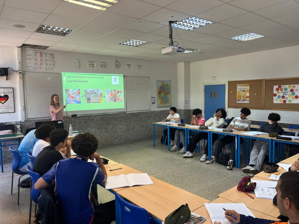 L’intervention a débuté par une courte présentation, claire et accessible, permettant aux élèves de découvrir quelques initiatives mises en place en Allemagne en faveur de l’environnement. Cette introduction a ensuite laissé place à une discussion riche et interactive.