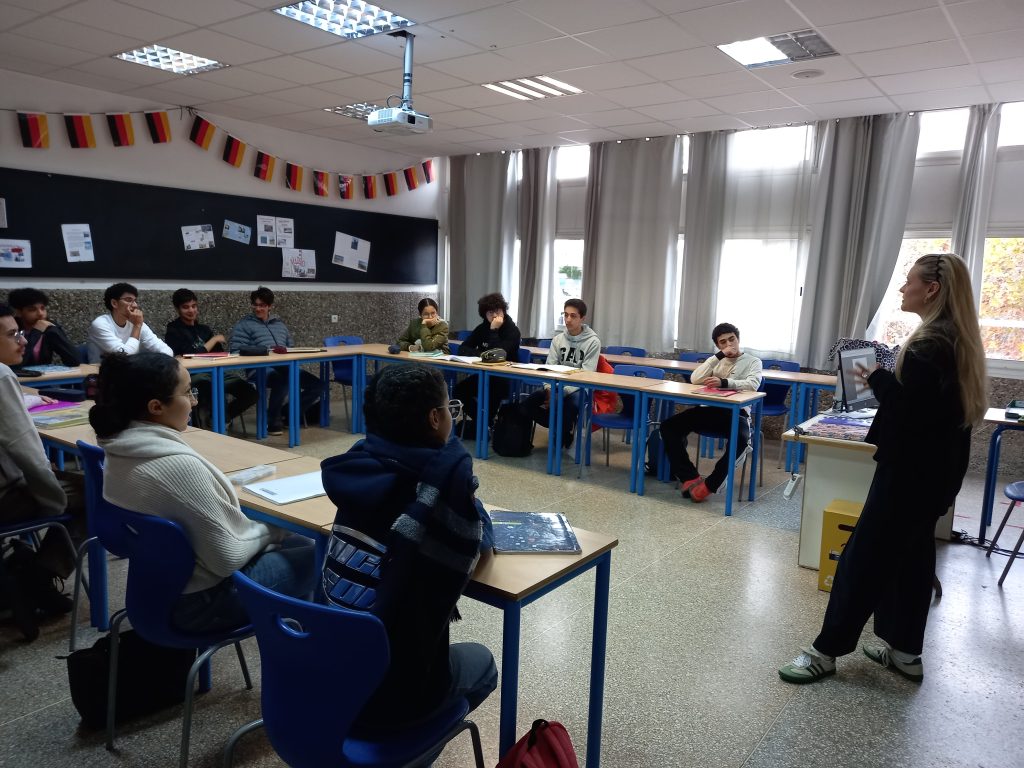 Aujourd’hui, nous avons eu la chance d’accueillir au Lycée Antonia Märtheshelmer, actuellement stagiaire à l’Institut Goethe à Rabat. Allemande originaire de Berlin, elle est venue échanger avec les lycéens de 1LVC germanistes sur les traditions de Noël dans son pays. À travers des courtes vidéos, des petites anecdotes et des chants de Noël traditionnels, elle nous a partagé l’ambiance féérique de la fin d’année en Allemagne. Rien de tel pour nos élèves qu’un exemple si concret ! Nous remercions Antonia chaleureusement et lui souhaitons, ainsi qu’à tous “Frohe Weihnachten und einen guten Rutsch ins neue Jahr !