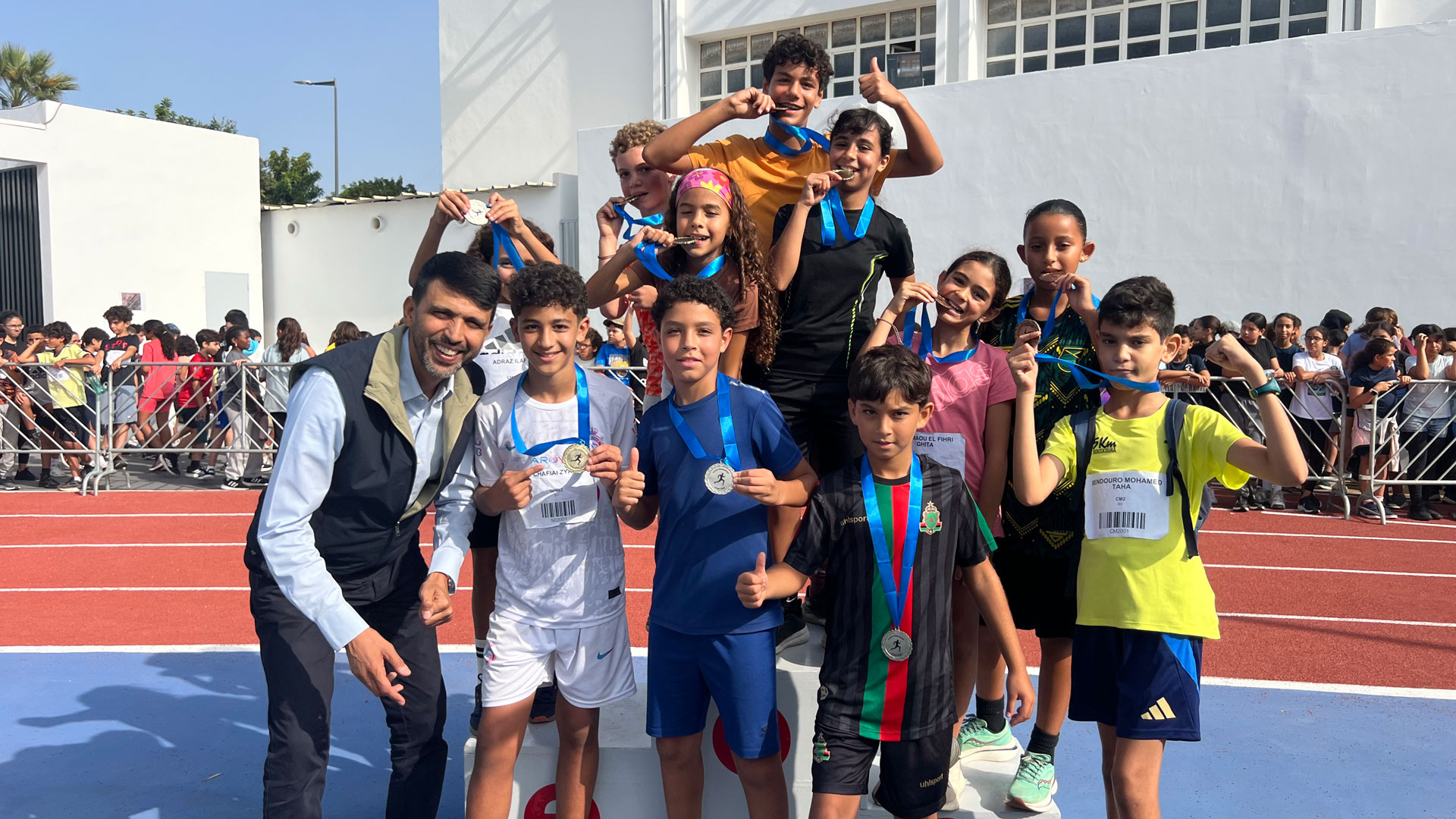Cette édition restera marquée par la présence exceptionnelle de M. Hicham El Guerrouj, champion olympique et légende de l’athlétisme marocain, venu remettre les médailles aux jeunes coureurs. Sa simplicité, son humilité et son parcours inspirant sur la persévérance ont profondément touché les élèves. Un moment magique et inoubliable pour toutes les personnes présentes.