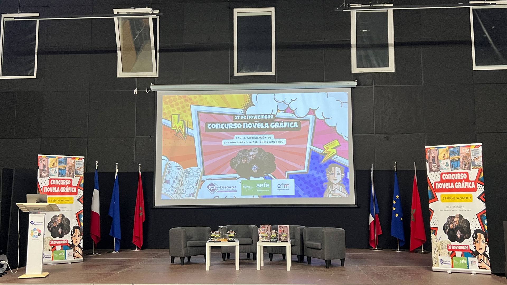 Ce jeudi 27 novembre 2025 s’est tenu le grand projet de zone autour du roman graphique, réunissant 160 élèves issus de 8 établissements français de la Zone Maroc. Une matinée exceptionnelle en présence des deux auteurs invités, Cristina Durán et Miguel Ángel Giner Bou, venus spécialement d’Espagne pour lancer notre Concours de Roman Graphique 2026.