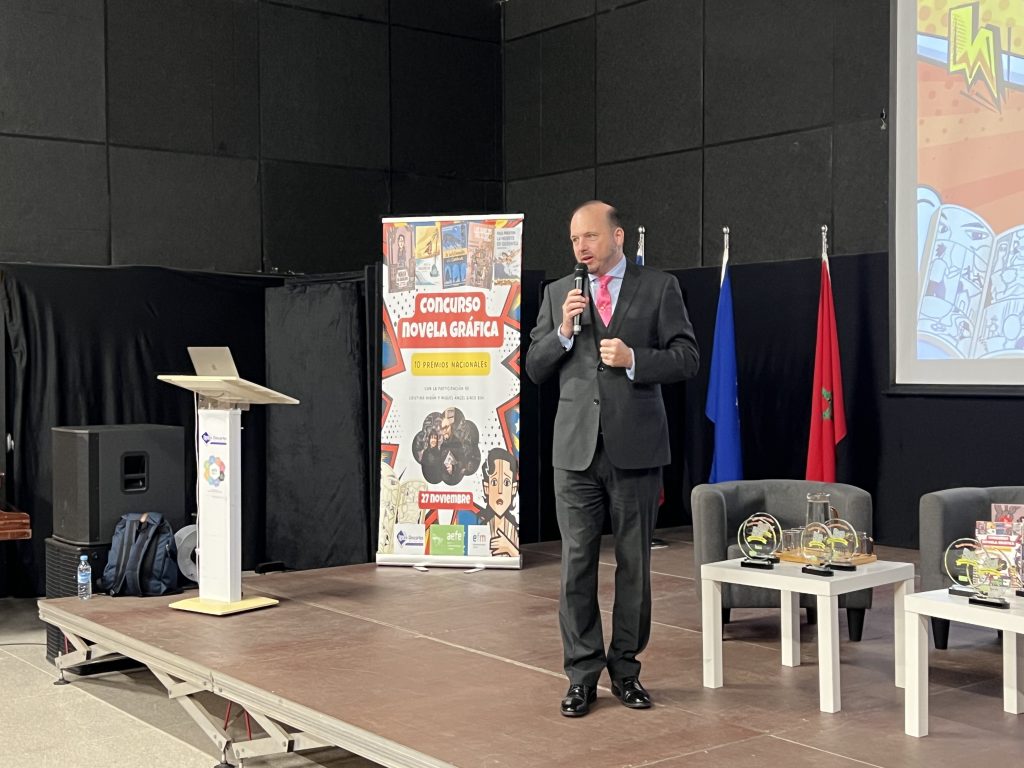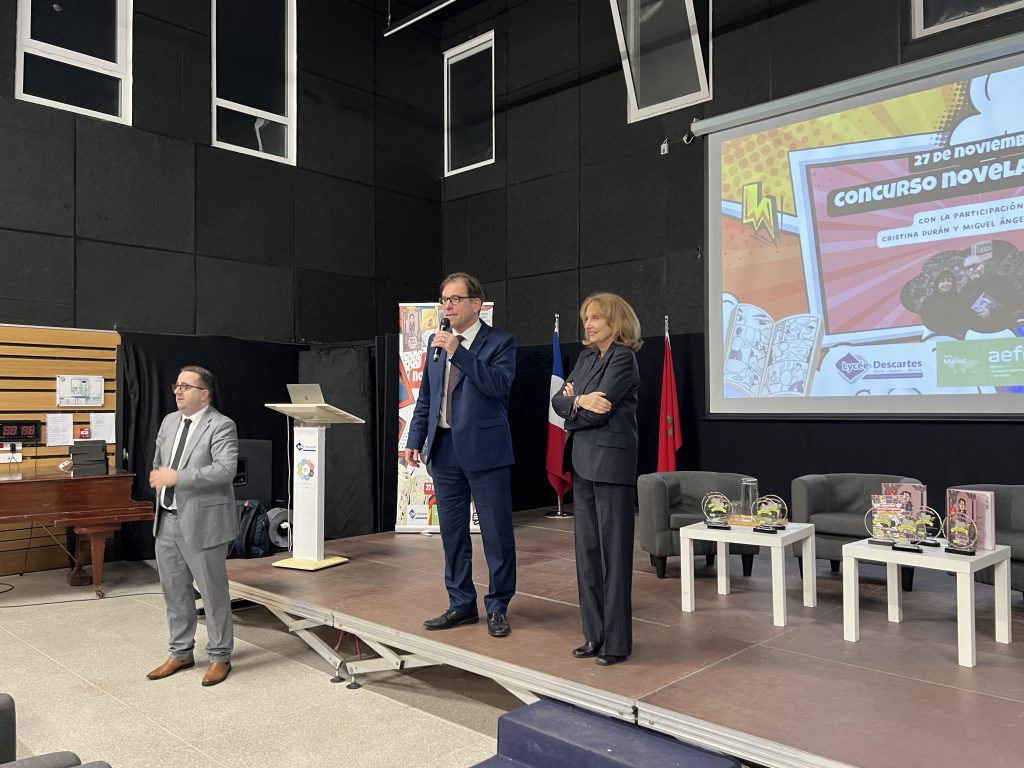 Ce jeudi 27 novembre 2025 s’est tenu le grand projet de zone autour du roman graphique, réunissant 160 élèves issus de 8 établissements français de la Zone Maroc. Une matinée exceptionnelle en présence des deux auteurs invités, Cristina Durán et Miguel Ángel Giner Bou, venus spécialement d’Espagne pour lancer notre Concours de Roman Graphique 2026.